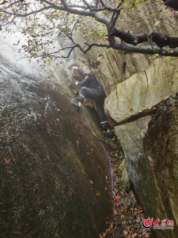 00:31大众网记者 滕立军 通讯员 焦妍 临沂报道10月17日,一场与时间赛跑的救援行动在山东临沂蒙山天壶峰上演。上午10时30分许,蒙阴县公安局蒙山派出所接到指挥中心的指令,北京一游客付某在蒙山海拔800米处登山时不慎从陡峭的天壶峰摔落至半山腰20多米深处,被困悬崖中间无法动弹。