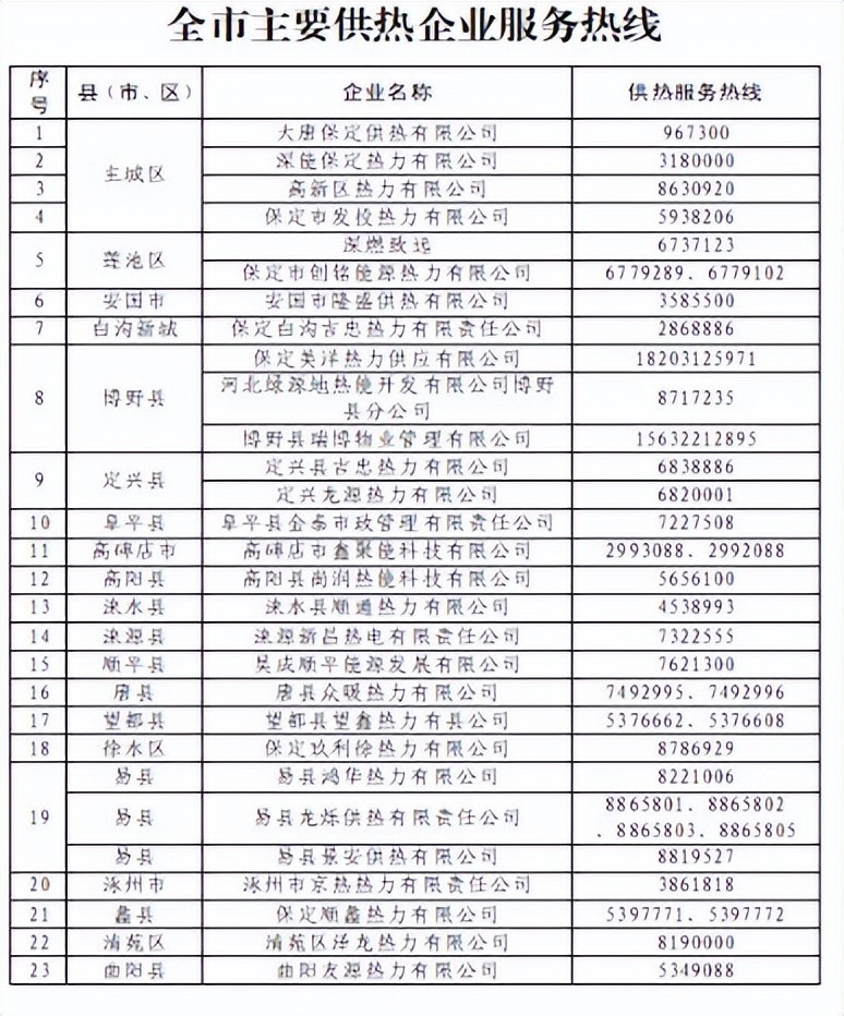 河北9市供暖服务热线