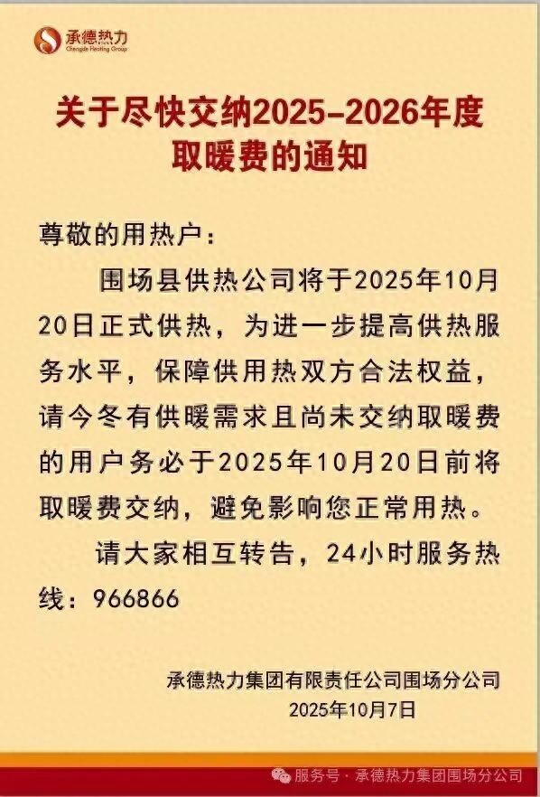 将于10月20日正式供热