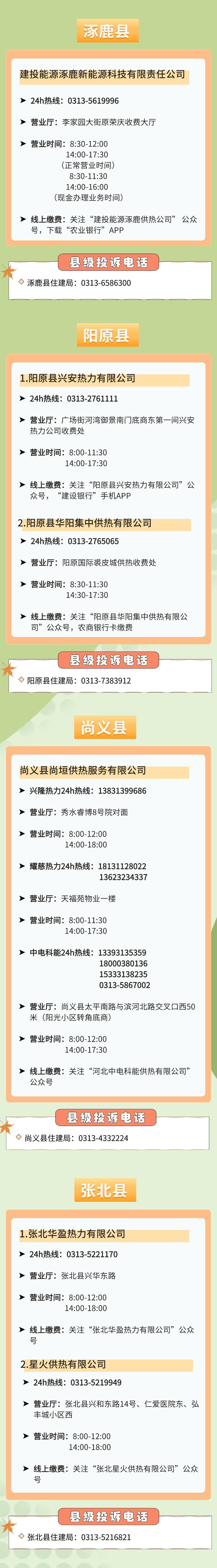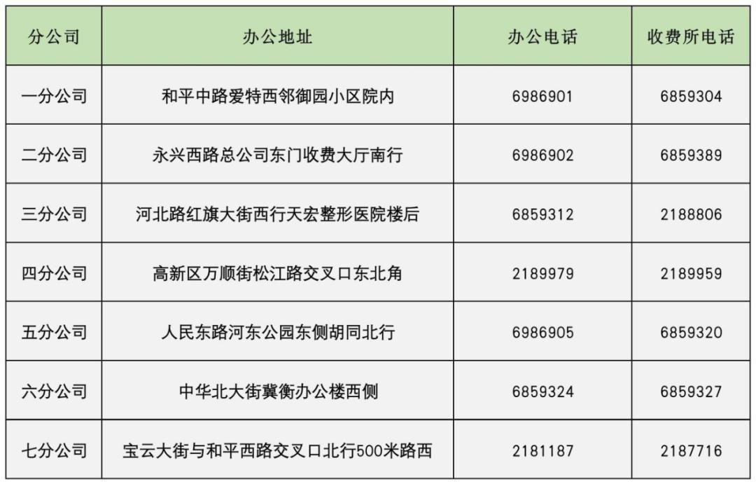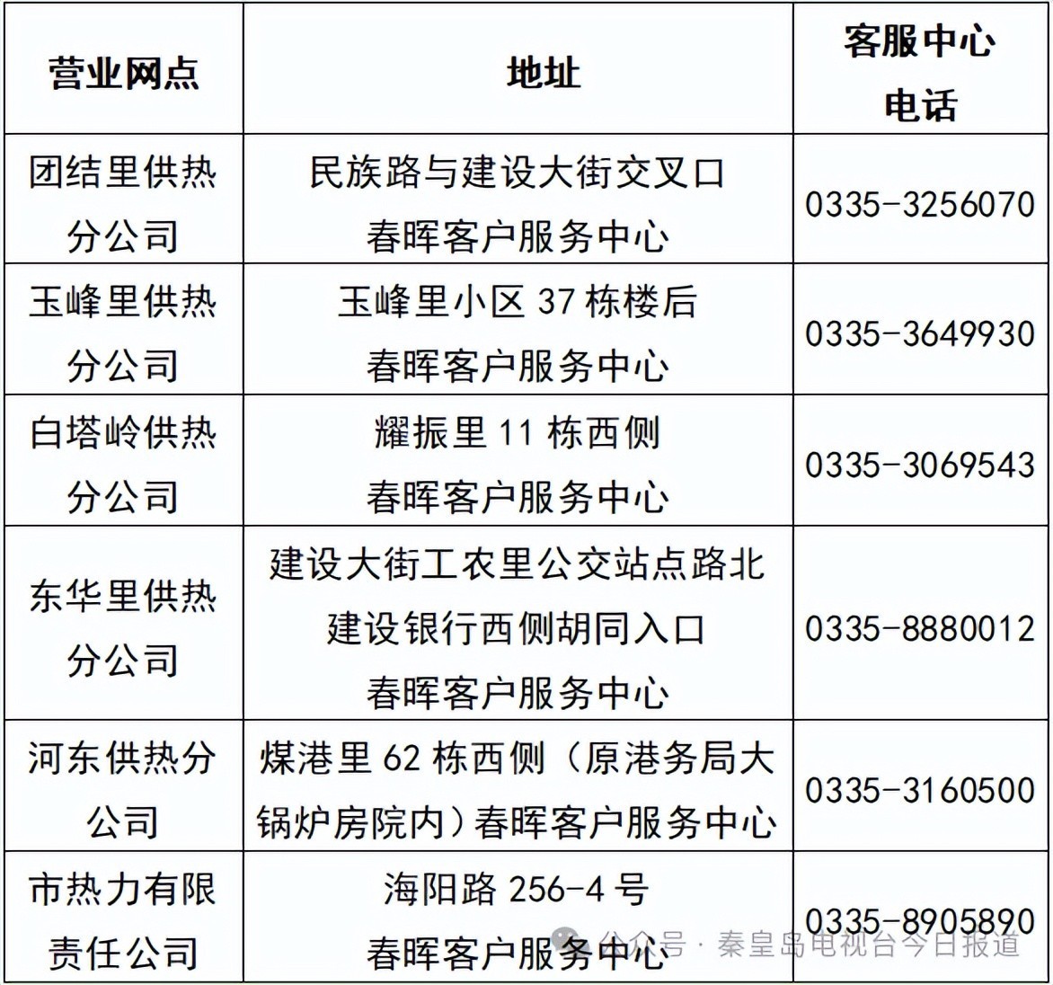 秦皇岛市热力有限责任公司各营业网点电话