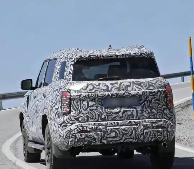 车尾取消了外挂式备胎设计,整体采用了方盒子造型,从上图可以看出来新车配备了贯穿式的后尾灯,而且尾灯同样做了向下延伸的层次造型,和前大灯相呼应,整体看起来还是非常饱满的,下方采用了和车头相似的分段式突出的后包围,增加了视觉上的厚重感,右边搭配了单边单出的排气筒,这组谍照图预计就是新增的插电混动车型。